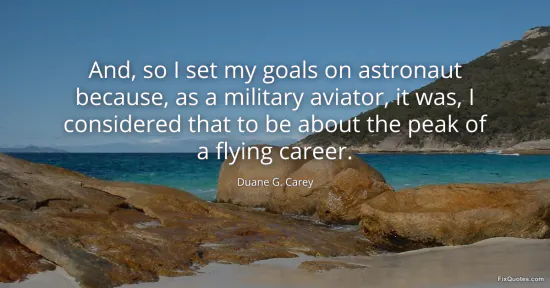 Carey, Duane G. "And, so I set my goals on astronaut because, as a military aviator, it was, I considered that to be about the peak of a flying career." FixQuotes. January 18, 2026. https://fixquotes.com/quotes/and-so-i-set-my-goals-on-astronaut-because-as-a-20328/.