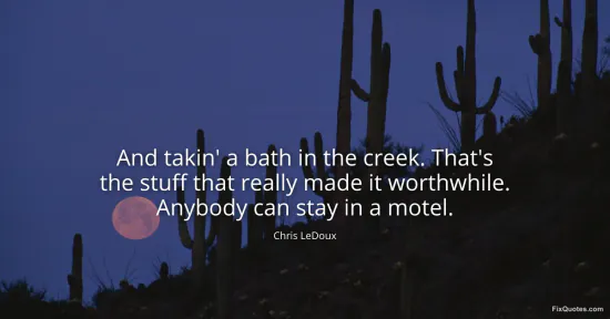 LeDoux, Chris. (2026, January 15). And takin' a bath in the creek. That's the stuff that really made it worthwhile. Anybody can stay in a motel. FixQuotes. https://fixquotes.com/quotes/and-takin-a-bath-in-the-creek-thats-the-stuff-150305/