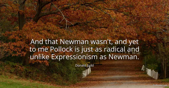 Judd, Donald. "And that Newman wasn't, and yet to me Pollock is just as radical and unlike Expressionism as Newman." FixQuotes. January 16, 2026. https://fixquotes.com/quotes/and-that-newman-wasnt-and-yet-to-me-pollock-is-117285/.