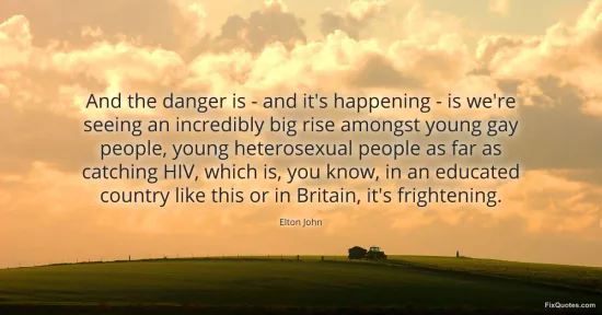 John, Elton. "And the danger is - and it's happening - is we're seeing an incredibly big rise amongst young gay people, young heterosexual people as far as catching HIV, which is, you know, in an educated country like this or in Britain, it's frightening." FixQuotes. January 17, 2026. https://fixquotes.com/quotes/and-the-danger-is-and-its-happening-is-were-25974/.