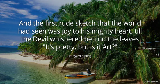 Kipling, Rudyard. (2026, January 18). And the first rude sketch that the world had seen was joy to his mighty heart, till the Devil whispered behind the leaves "It's pretty, but is it Art?". FixQuotes. https://fixquotes.com/quotes/and-the-first-rude-sketch-that-the-world-had-seen-15611/