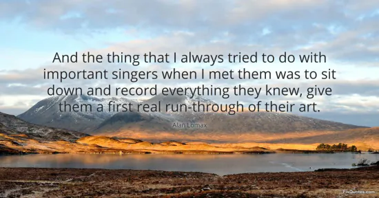 Lomax, Alan. "And the thing that I always tried to do with important singers when I met them was to sit down and record everything they knew, give them a first real run-through of their art." FixQuotes. January 14, 2026. https://fixquotes.com/quotes/and-the-thing-that-i-always-tried-to-do-with-162872/.