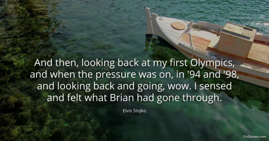 Stojko, Elvis. "And then, looking back at my first Olympics, and when the pressure was on, in '94 and '98, and looking back and going, wow. I sensed and felt what Brian had gone through." FixQuotes. January 17, 2026. https://fixquotes.com/quotes/and-then-looking-back-at-my-first-olympics-and-59803/.