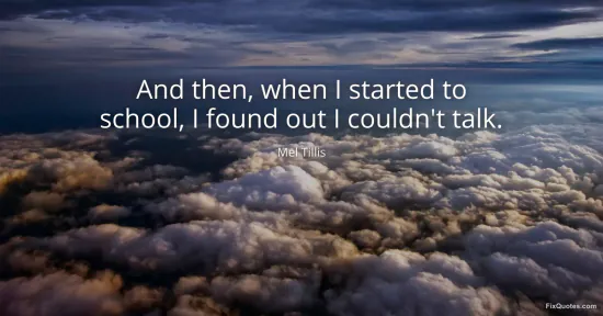 Tillis, Mel. "And then, when I started to school, I found out I couldn't talk." FixQuotes. January 16, 2026. https://fixquotes.com/quotes/and-then-when-i-started-to-school-i-found-out-i-82754/.