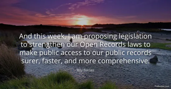 Barnes, Roy. (2026, January 16). And this week, I am proposing legislation to strengthen our Open Records laws to make public access to our public records surer, faster, and more comprehensive. FixQuotes. https://fixquotes.com/quotes/and-this-week-i-am-proposing-legislation-to-112965/