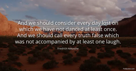 "And we should consider every day lost on which we have not danced at least once. And we should call every truth false which was not accompanied by at least one laugh"