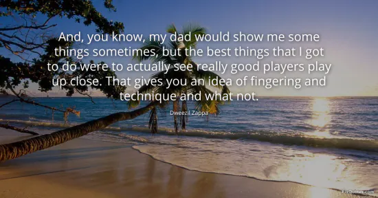 Zappa, Dweezil. (2026, January 17). And, you know, my dad would show me some things sometimes, but the best things that I got to do were to actually see really good players play up close. That gives you an idea of fingering and technique and what not. FixQuotes. https://fixquotes.com/quotes/and-you-know-my-dad-would-show-me-some-things-59272/