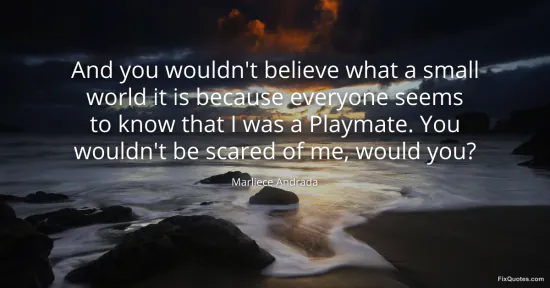 Andrada, Marliece. (2026, January 16). And you wouldn't believe what a small world it is because everyone seems to know that I was a Playmate. You wouldn't be scared of me, would you? FixQuotes. https://fixquotes.com/quotes/and-you-wouldnt-believe-what-a-small-world-it-is-114727/