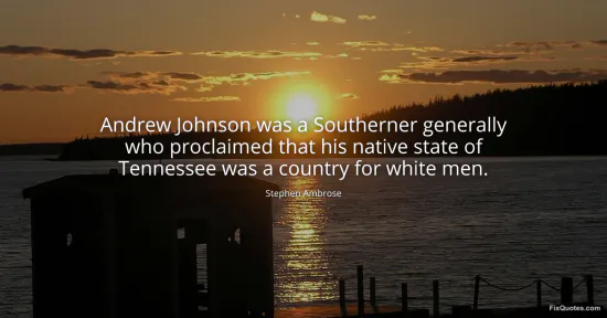 Ambrose’s line lands like a historian’s scalpel: clean, almost casual, and then suddenly bloody. He’s not just labeling Andrew Johnson a racist; he’s showing how whiteness functioned as a political identity with territorial ambition. “A Southerner generally” sounds mild, even sociological, but it’s bait. The phrase sets up Johnson as more than a Tennessee Unionist outlier; it folds him back into the broader Southern worldview that the Civil War supposedly discredited. The sentence then snaps shut on the real point: Johnson’s public claim that Tennessee was “a country for white men” wasn’t a private prejudice. It was a governing principle.