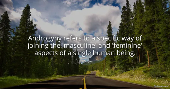 Singer, June. "Androgyny refers to a specific way of joining the 'masculine' and 'feminine' aspects of a single human being." FixQuotes. January 16, 2026. https://fixquotes.com/quotes/androgyny-refers-to-a-specific-way-of-joining-the-123600/.