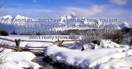 Greenwood, Bruce. (2026, January 16). Animals... don't have a sense of time. You just have to do things over and over with animals until they happen to do it right because they don't really know what you want. FixQuotes. https://fixquotes.com/quotes/animals-dont-have-a-sense-of-time-you-just-have-139416/