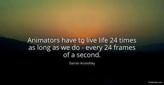 Aronofsky, Darren. (2026, January 15). Animators have to live life 24 times as long as we do - every 24 frames of a second. FixQuotes. https://fixquotes.com/quotes/animators-have-to-live-life-24-times-as-long-as-50349/