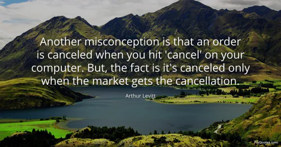 Levitt, Arthur. (2026, January 17). Another misconception is that an order is canceled when you hit 'cancel' on your computer. But, the fact is it's canceled only when the market gets the cancellation. FixQuotes. https://fixquotes.com/quotes/another-misconception-is-that-an-order-is-41426/
