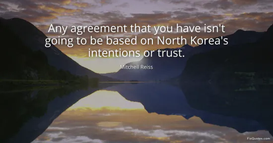 Reiss, Mitchell. (2026, January 18). Any agreement that you have isn't going to be based on North Korea's intentions or trust. FixQuotes. https://fixquotes.com/quotes/any-agreement-that-you-have-isnt-going-to-be-12214/