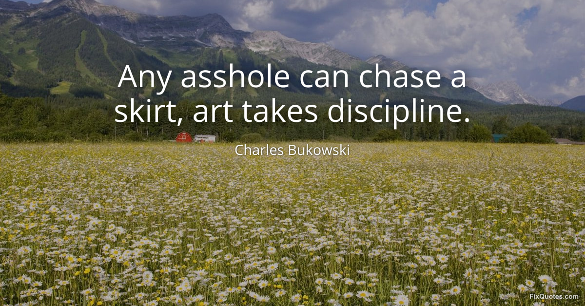 Bukowski, Charles. "Any asshole can chase a skirt, art takes discipline." FixQuotes. February 10, 2026. https://fixquotes.com/quotes/any-asshole-can-chase-a-skirt-art-takes-discipline-185156/.