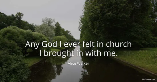 Walker, Alice. (2026, February 9). Any God I ever felt in church I brought in with me. FixQuotes. https://fixquotes.com/quotes/any-god-i-ever-felt-in-church-i-brought-in-with-me-37267/