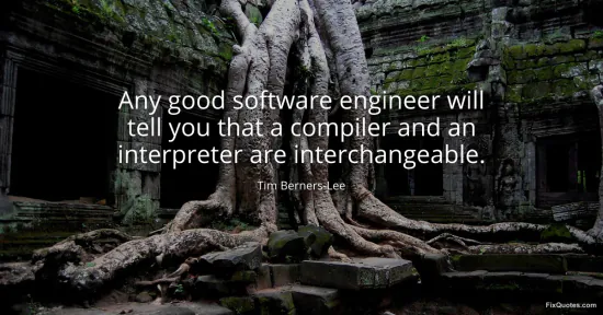 Berners-Lee, Tim. (2026, January 18). Any good software engineer will tell you that a compiler and an interpreter are interchangeable. FixQuotes. https://fixquotes.com/quotes/any-good-software-engineer-will-tell-you-that-a-3297/