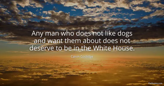 Coolidge, Calvin. (2026, January 17). Any man who does not like dogs and want them about does not deserve to be in the White House. FixQuotes. https://fixquotes.com/quotes/any-man-who-does-not-like-dogs-and-want-them-30351/