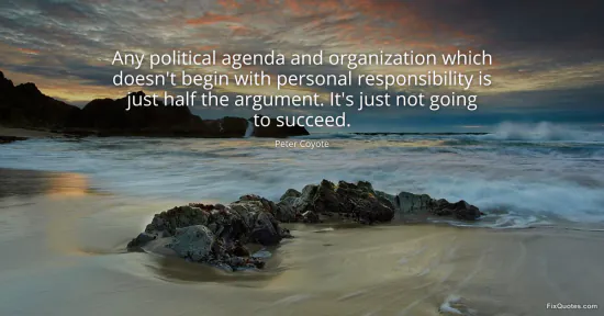 Coyote, Peter. "Any political agenda and organization which doesn't begin with personal responsibility is just half the argument. It's just not going to succeed." FixQuotes. January 15, 2026. https://fixquotes.com/quotes/any-political-agenda-and-organization-which-155776/.
