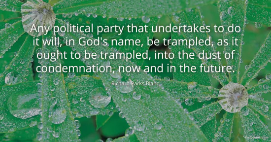 Bland, Richard Parks. "Any political party that undertakes to do it will, in God's name, be trampled, as it ought to be trampled, into the dust of condemnation, now and in the future." FixQuotes. January 16, 2026. https://fixquotes.com/quotes/any-political-party-that-undertakes-to-do-it-will-116044/.