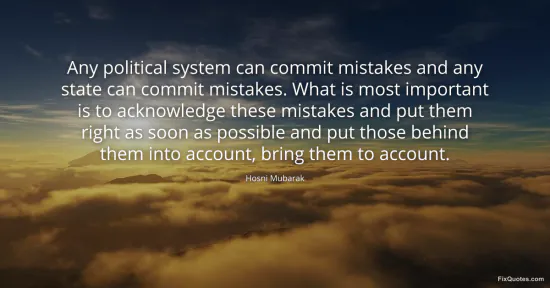 Mubarak, Hosni. (2026, January 15). Any political system can commit mistakes and any state can commit mistakes. What is most important is to acknowledge these mistakes and put them right as soon as possible and put those behind them into account, bring them to account. FixQuotes. https://fixquotes.com/quotes/any-political-system-can-commit-mistakes-and-any-144397/
