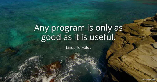 Torvalds, Linus. (2026, January 14). Any program is only as good as it is useful. FixQuotes. https://fixquotes.com/quotes/any-program-is-only-as-good-as-it-is-useful-81521/