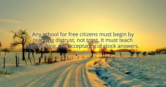 "Any school for free citizens must begin by teaching distrust, not trust. It must teach questioning, not acceptance of stock answers"