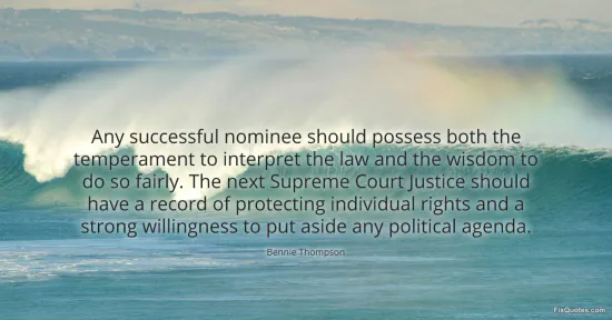 Thompson, Bennie. (2026, January 17). Any successful nominee should possess both the temperament to interpret the law and the wisdom to do so fairly. The next Supreme Court Justice should have a record of protecting individual rights and a strong willingness to put aside any political agenda. FixQuotes. https://fixquotes.com/quotes/any-successful-nominee-should-possess-both-the-62735/