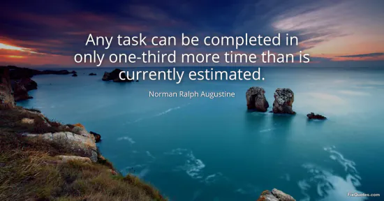 Augustine, Norman Ralph. (2026, January 16). Any task can be completed in only one-third more time than is currently estimated. FixQuotes. https://fixquotes.com/quotes/any-task-can-be-completed-in-only-one-third-more-115511/