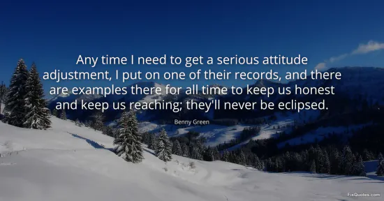 Green, Benny. "Any time I need to get a serious attitude adjustment, I put on one of their records, and there are examples there for all time to keep us honest and keep us reaching; they'll never be eclipsed." FixQuotes. January 17, 2026. https://fixquotes.com/quotes/any-time-i-need-to-get-a-serious-attitude-36939/.