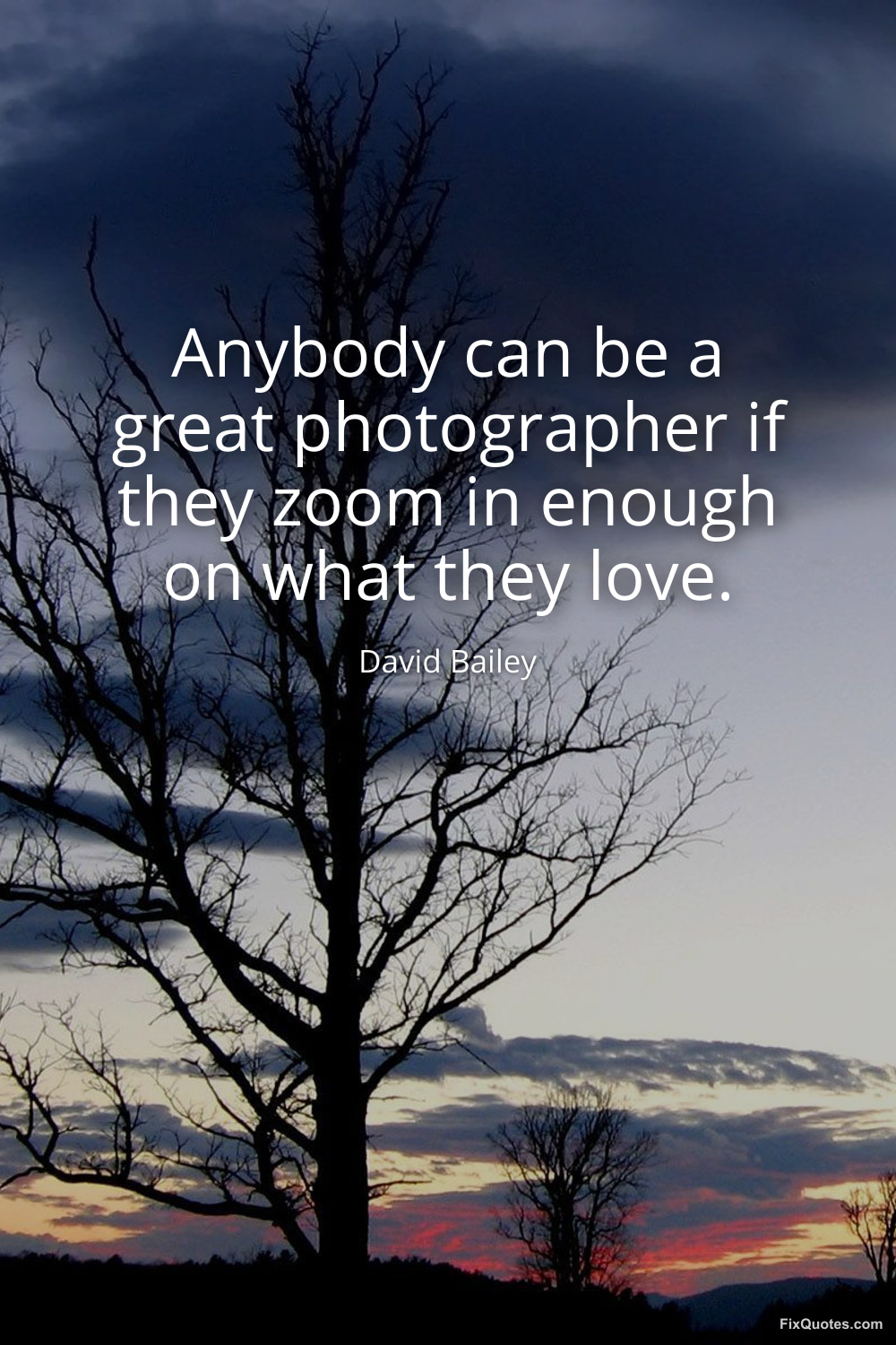 Bailey, David. (2026, March 23). Anybody can be a great photographer if they zoom in enough on what they love. FixQuotes. https://fixquotes.com/quotes/anybody-can-be-a-great-photographer-if-they-zoom-186245/
