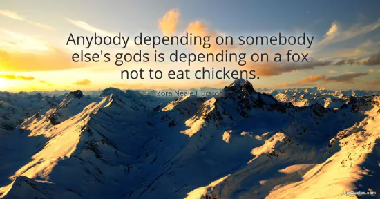 Hurston, Zora Neale. (2026, January 18). Anybody depending on somebody else's gods is depending on a fox not to eat chickens. FixQuotes. https://fixquotes.com/quotes/anybody-depending-on-somebody-elses-gods-is-10128/
