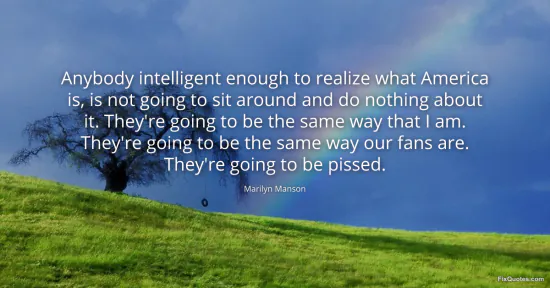 Manson, Marilyn. "Anybody intelligent enough to realize what America is, is not going to sit around and do nothing about it. They're going to be the same way that I am. They're going to be the same way our fans are. They're going to be pissed." FixQuotes. January 18, 2026. https://fixquotes.com/quotes/anybody-intelligent-enough-to-realize-what-718/.