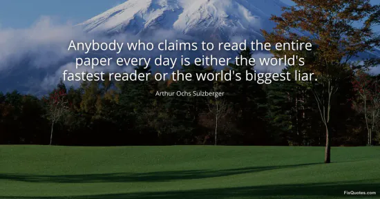 Sulzberger, Arthur Ochs. "Anybody who claims to read the entire paper every day is either the world's fastest reader or the world's biggest liar." FixQuotes. January 16, 2026. https://fixquotes.com/quotes/anybody-who-claims-to-read-the-entire-paper-every-131807/.