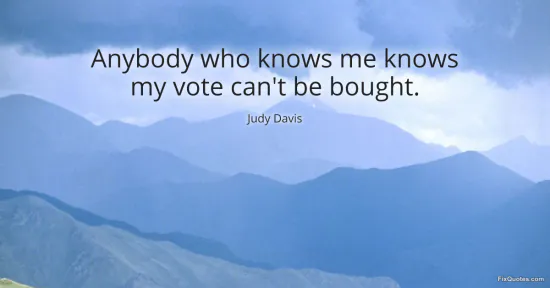 Davis, Judy. (2026, January 15). Anybody who knows me knows my vote can't be bought. FixQuotes. https://fixquotes.com/quotes/anybody-who-knows-me-knows-my-vote-cant-be-bought-148809/