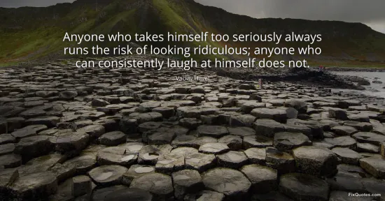 Havel, Vaclav. (2026, January 16). Anyone who takes himself too seriously always runs the risk of looking ridiculous; anyone who can consistently laugh at himself does not. FixQuotes. https://fixquotes.com/quotes/anyone-who-takes-himself-too-seriously-always-84793/