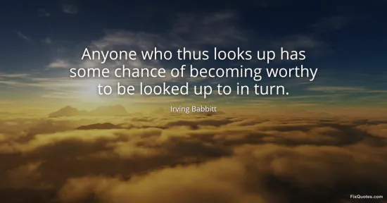 Babbitt, Irving. "Anyone who thus looks up has some chance of becoming worthy to be looked up to in turn." FixQuotes. January 17, 2026. https://fixquotes.com/quotes/anyone-who-thus-looks-up-has-some-chance-of-79794/.