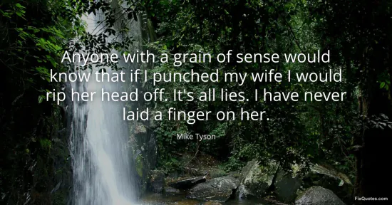 Tyson, Mike. "Anyone with a grain of sense would know that if I punched my wife I would rip her head off. It's all lies. I have never laid a finger on her." FixQuotes. January 18, 2026. https://fixquotes.com/quotes/anyone-with-a-grain-of-sense-would-know-that-if-i-22454/.