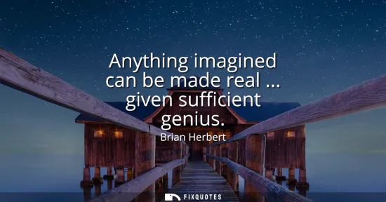 Coming from Brian Herbert, the phrase also echoes the long shadow of the Dune enterprise, where “making real” isn’t metaphorical. His career has involved extending an inherited universe, turning outlines, notes, and fans’ expectations into publishable realities. In that context, “genius” reads less like a romantic lightning bolt and more like a contested credential: who gets to claim the authority to concretize a world that began in someone else’s head? The sentence quietly stages that debate while sounding like a motivational aphorism.