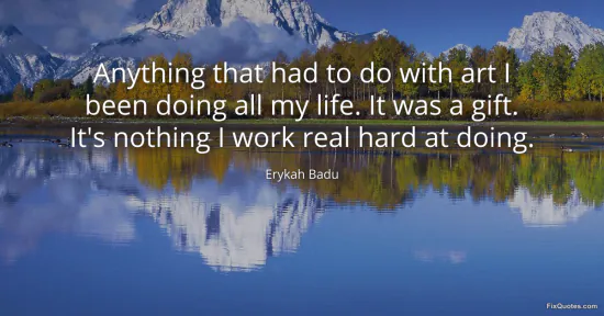 Badu, Erykah. "Anything that had to do with art I been doing all my life. It was a gift. It's nothing I work real hard at doing." FixQuotes. January 15, 2026. https://fixquotes.com/quotes/anything-that-had-to-do-with-art-i-been-doing-all-141332/.