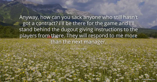 Gascoigne, Paul. (2026, February 16). Anyway, how can you sack anyone who still hasn't got a contract? I'll be there for the game and I'll stand behind the dugout giving instructions to the players from there. They will respond to me more than the next manager. FixQuotes. https://fixquotes.com/quotes/anyway-how-can-you-sack-anyone-who-still-hasnt-116465/