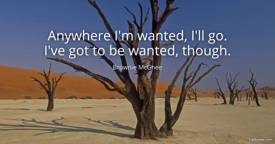 McGhee, Brownie. "Anywhere I'm wanted, I'll go. I've got to be wanted, though." FixQuotes. January 17, 2026. https://fixquotes.com/quotes/anywhere-im-wanted-ill-go-ive-got-to-be-wanted-66623/.