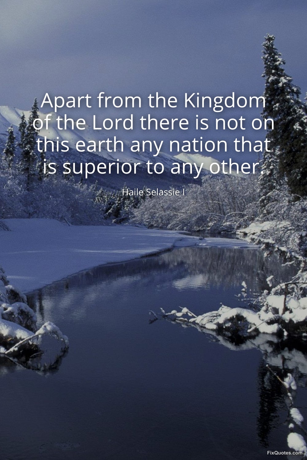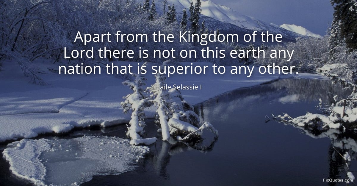 Selassie, Haile. (2026, March 14). Apart from the Kingdom of the Lord there is not on this earth any nation that is superior to any other. FixQuotes. https://fixquotes.com/quotes/apart-from-the-kingdom-of-the-lord-there-is-not-186077/