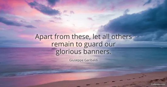 Garibaldi, Giuseppe. "Apart from these, let all others remain to guard our glorious banners." FixQuotes. January 17, 2026. https://fixquotes.com/quotes/apart-from-these-let-all-others-remain-to-guard-32901/.