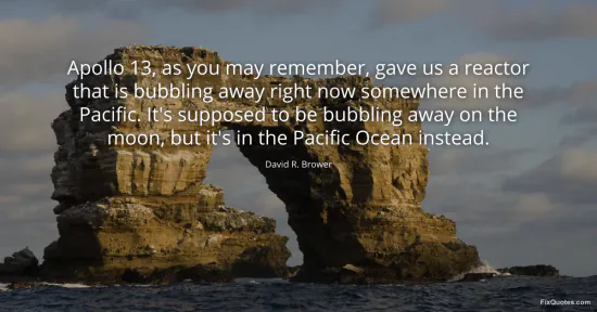 Brower, David R. "Apollo 13, as you may remember, gave us a reactor that is bubbling away right now somewhere in the Pacific. It's supposed to be bubbling away on the moon, but it's in the Pacific Ocean instead." FixQuotes. January 18, 2026. https://fixquotes.com/quotes/apollo-13-as-you-may-remember-gave-us-a-reactor-15728/.