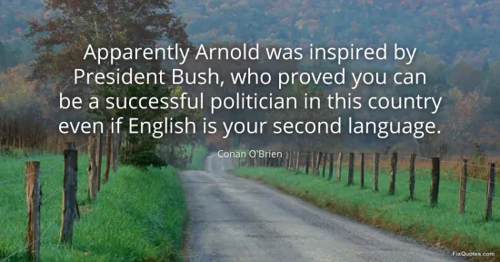 O'Brien, Conan. (2026, January 15). Apparently Arnold was inspired by President Bush, who proved you can be a successful politician in this country even if English is your second language. FixQuotes. https://fixquotes.com/quotes/apparently-arnold-was-inspired-by-president-bush-155131/