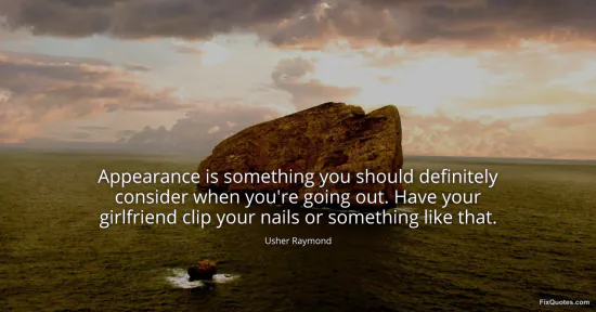 Raymond, Usher. "Appearance is something you should definitely consider when you're going out. Have your girlfriend clip your nails or something like that." FixQuotes. January 16, 2026. https://fixquotes.com/quotes/appearance-is-something-you-should-definitely-137229/.