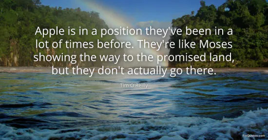 O'Reilly, Tim. "Apple is in a position they've been in a lot of times before. They're like Moses showing the way to the promised land, but they don't actually go there." FixQuotes. January 16, 2026. https://fixquotes.com/quotes/apple-is-in-a-position-theyve-been-in-a-lot-of-118468/.