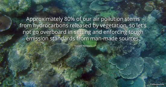Reagan, Ronald. "Approximately 80% of our air pollution stems from hydrocarbons released by vegetation, so let's not go overboard in setting and enforcing tough emission standards from man-made sources." FixQuotes. January 17, 2026. https://fixquotes.com/quotes/approximately-80-of-our-air-pollution-stems-from-24948/.