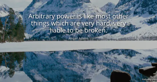 Adams, Abigail. "Arbitrary power is like most other things which are very hard, very liable to be broken." FixQuotes. January 18, 2026. https://fixquotes.com/quotes/arbitrary-power-is-like-most-other-things-which-19302/.